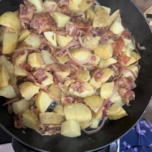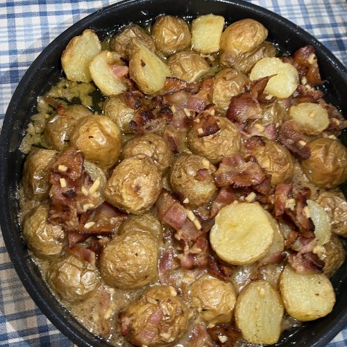 Transfer the potatoes to a large mixing bowl. Add the bacon & parsley. Gently toss to evenly combine.
