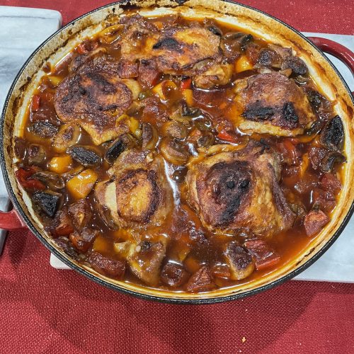 If the sauce is too thin for your liking, add 2 tablespoons of extra tomato paste while it's simmering to thicken.TO MAKE AHEAD:This chicken cacciatore can be made up to 1 day ahead, cooled, covered and refrigerated. Rewarm over low-medium heat. TO FREEZE: Transfer the cooled cacciatore into an air tight container and transfer to the freezer. The day of serving, thaw it out in the morning and bring to room temperature. Transfer to a skillet / pan and reheat over low-medium heat until warmed through