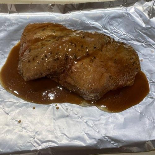 Mix the sugar and mustard together and spread over the top of the brisket. Return to the oven at 400⁰ F. until glaze is slightly browned and bubbly.