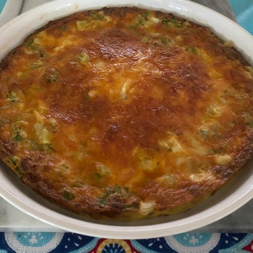 Pour mixture into a lightly greased 9-inch deep pie dish.