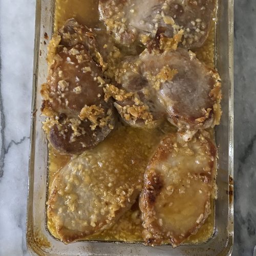 Sear seasoned chops in a hot oven-proof pan or skillet over medium-high for 2 minutes per side -- get them crisp.