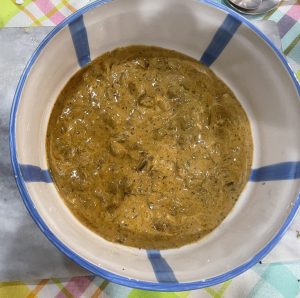 Add the butter to the pan, and stir in the onions and mushrooms. Sauté the mixture, stirring occasionally and scraping up the browned bits from the beef, until the onion is translucent and the onions and mushrooms are browned, about 5 minutes. Add the garlic and cook for another minute, until fragrant.