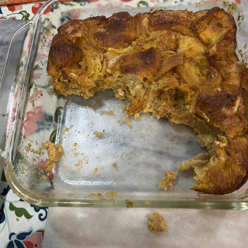 To make the pumpkin bread pudding: