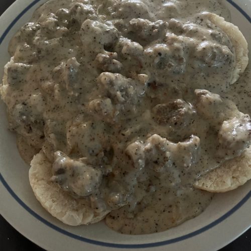 Looking for a dish that has been loved by G.I.'s around the world for decades? Look no further than the classic recipe for S.O.S.! Get ready for a unique twist on a classic dish with this recipe! This version uses savory sausage instead of chipped beef, giving it a bold and flavorful twist. But that's not all - the inclusion of garlic and sage takes this dish to a whole new level, adding a depth of flavor that's sure to impress.This hearty meal features slices of sausage in a creamy gravy served over toasted bread. It's a simple and satisfying dish that's perfect for a weekend breakfast, a cozy brunch, or even a quick weeknight dinner. And with the added flavors of garlic and sage, it's a unique take on a classic dish that's sure to become a new favorite.So, if you're looking for a comforting and delicious meal that's quick and easy to make this is the perfect recipe to try. It's a dish that will warm your belly and your heart, leaving you feeling content and satisfied.This beloved dish has been a staple in military mess halls and dining facilities around the world, loved by soldiers for its simplicity, and satisfying flavor.For many soldiers, S.O.S. has been a source of comfort and familiarity, providing a taste of home no matter where they were stationed. It's a dish that's been enjoyed by countless military personnel over the years, and has become a part of military culture and tradition.