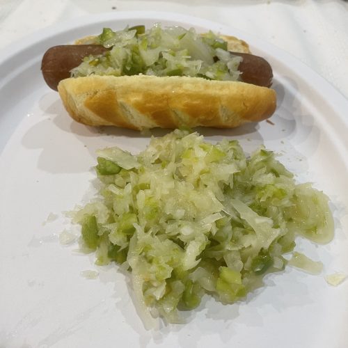 Use a strainer to rinse sauerkraut and then use hands to squeeze excess moisture off of sauerkraut. This allows the salad dressing flavors to better soak in. Green bell pepper can be substituted for red, orange or yellow bell pepper which will also make the salad more colorful and a bit sweeter. Your favorite flavor of onion may be used in this salad. Feel free to add in carrots, apples, broccoli, cauliflower, cucumbers or the veggie of your choice.