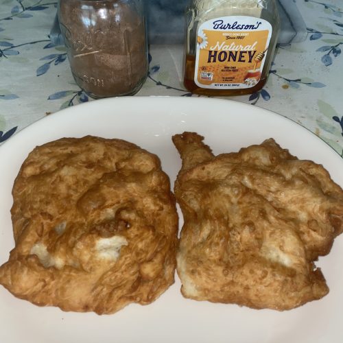 Comfort food from Dennis's childhood. Usually a flat dough bread, fried or deep-fried in oil, shortening, or lard. Normally eaten with butter, honey, jam, powdered sugar or your favorite ingredients. Fried Bread is a beloved tradition in the United States. Serve it up savory as Navajo Tacos or go the sweet side and serve it up with a little honey butter and powdered sugar.