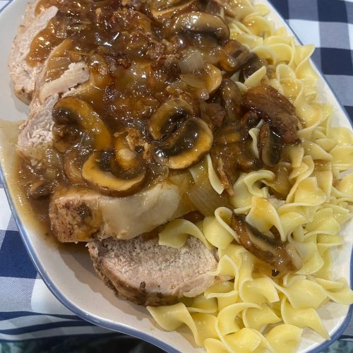 To serve: Place a pork chop atop fluffy cooked rice or egg noodles, spoon gravy over the pork chop and sprinkle with parsley.